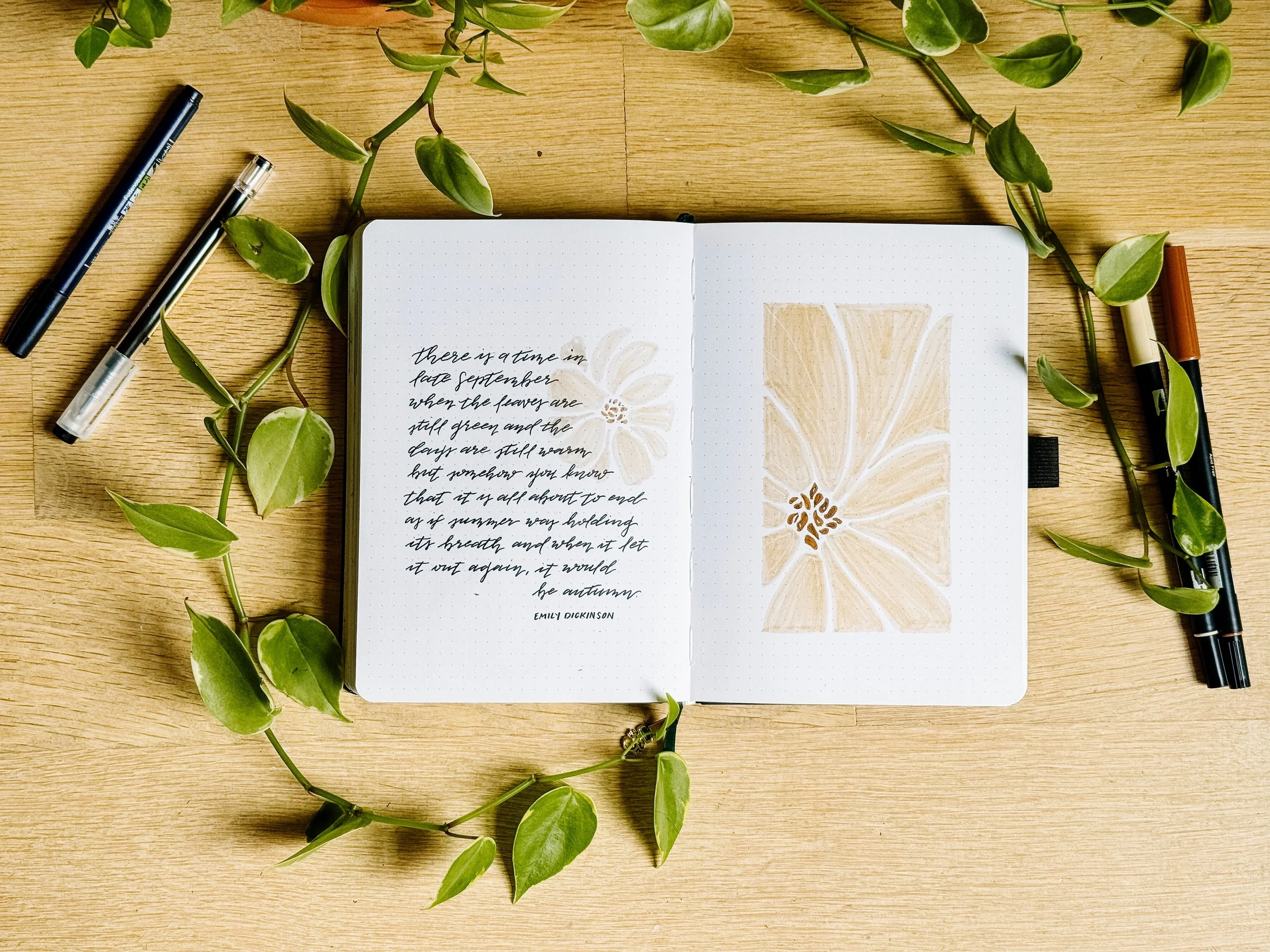 Monochromatic Green Florals for my April 2025 Bullet Journal